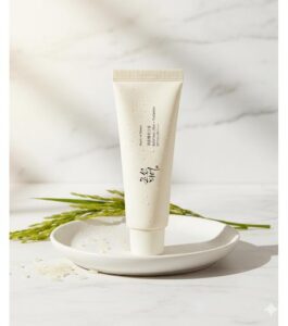 Protetor solar leve com arroz e probióticos.